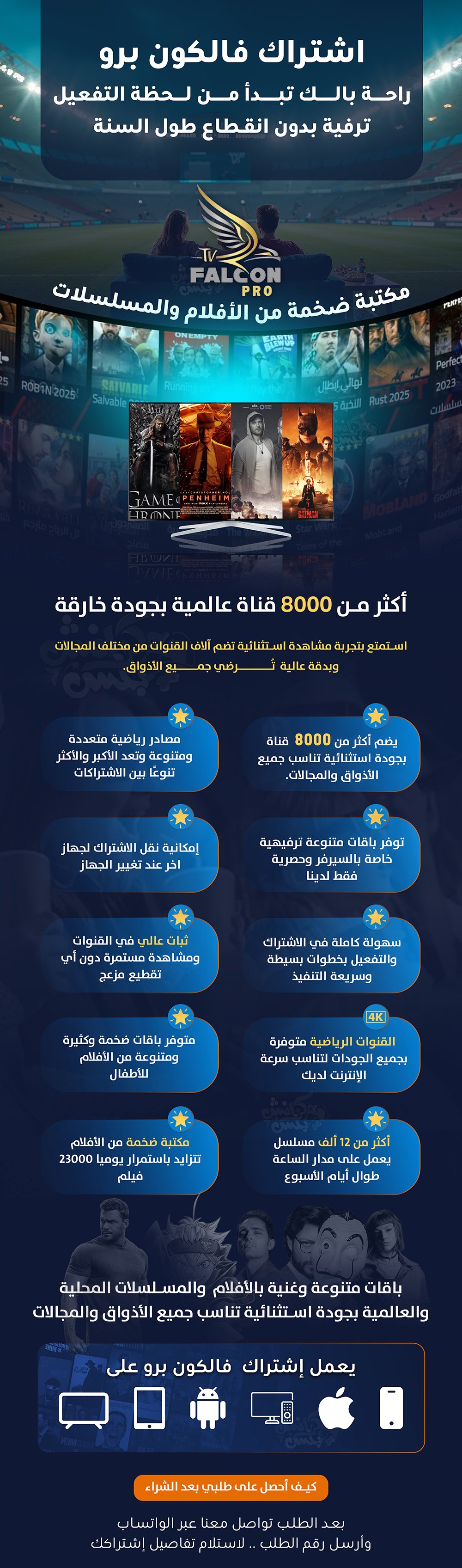 📲 ابدأ تجربة المشاهدة الأقوى في المملكة مع فالكون برو اليوم!